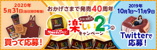 12/9 「ルート限定商品」更新しました。 12/2 「商品ジョウホウ」更新しました。 10/1 「コーヒーヌガー40周年キャンペーン情報」更新しました。 Instagram Facebook Twitter