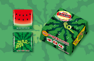 パカっと割れる箱型チロルですいか割りが楽しめる♪すいかソースを入れた食感が違うすいかチロル2種類をアソート!箱の中から当たりハガキが出れば熊本県産のすいかをプレゼント♪(24年9月30日消印有効)