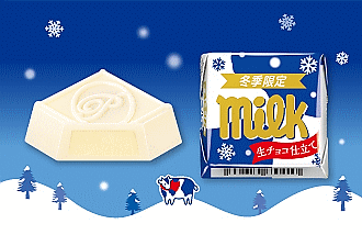 定番ミルクの冬季限定フレーバー!まろやかでクリーミーなミルク風味チョコの中にミルク風味生チョコを入れ、口どけなめらかな味わいに仕上げました♪